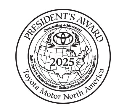 The Toyota President's Award is the highest honor a Toyota dealership can receive. It recognizes dealers who consistently deliver outstanding customer satisfaction across sales, service, and operations. Earning this award means Toyota has recognized the dealership for meeting its highest standards for quality, performance, and customer care-year after year.